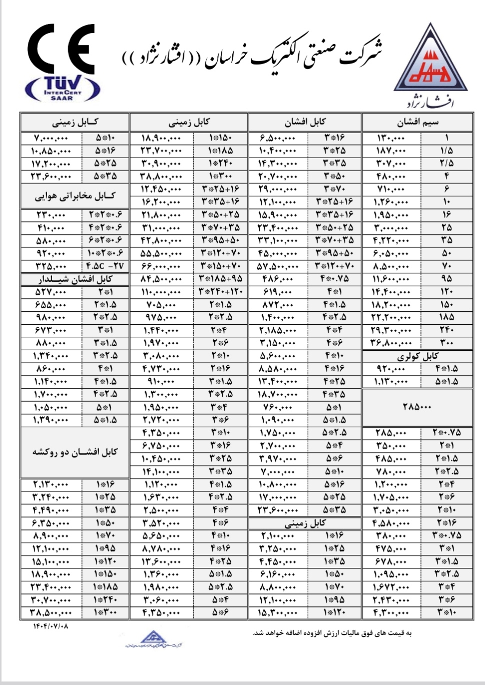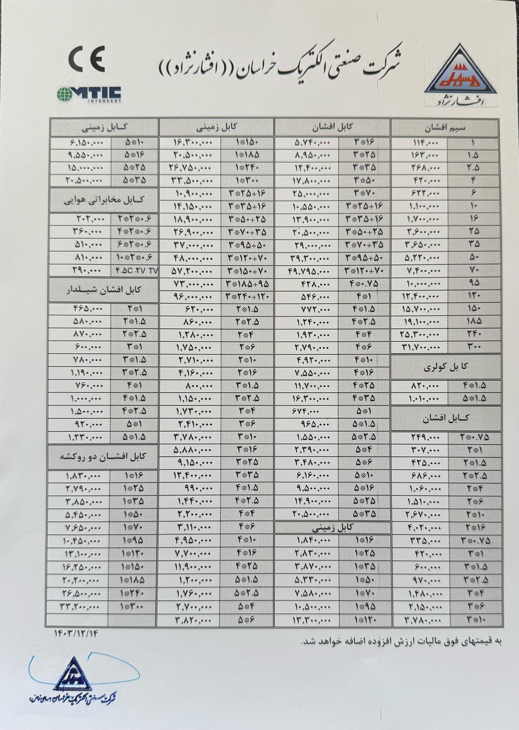 در امیرکابل میتوانید انواع محصولات خراسان افشارنژاد را همراه با لیست قیمت کارخانه بهروز مشاهده کنید و خرید خود را با ضمانت اصالت کالا انجام دهید. همچنین تیم ما آماده ارائه مشاوره رایگان برای انتخاب بهترین سیم و کابل متناسب با نیاز پروژههای ساختمانی و صنعتی شماست