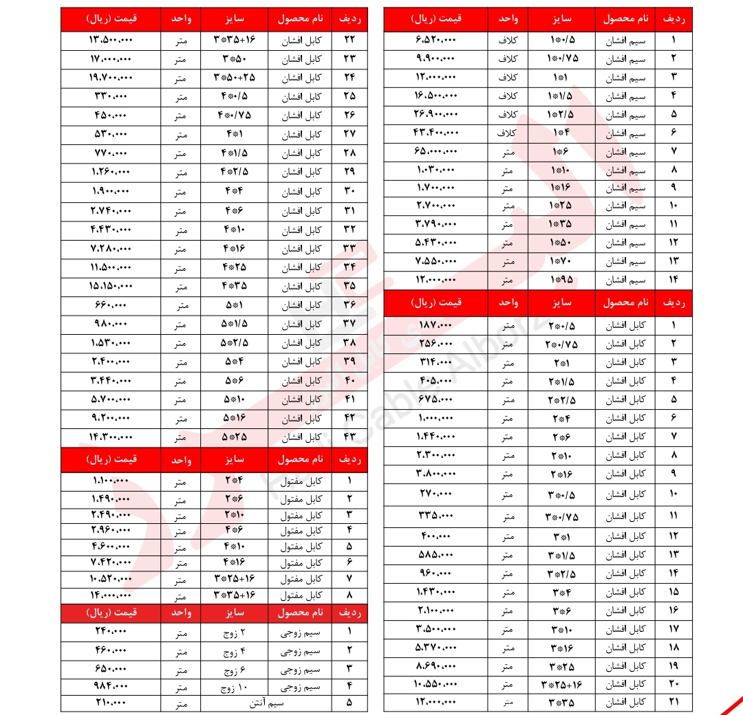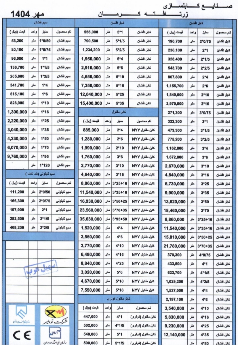 در امیرکابل میتوانید به لیست قیمت کارخانه سیم و کابل زرتافته کرمان دسترسی داشته باشید و خرید خود را با ضمانت اصالت کالا انجام دهید. همچنین تیم ما آماده ارائه مشاوره رایگان برای انتخاب بهترین سیم و کابل متناسب با نیاز پروژههای شماست.