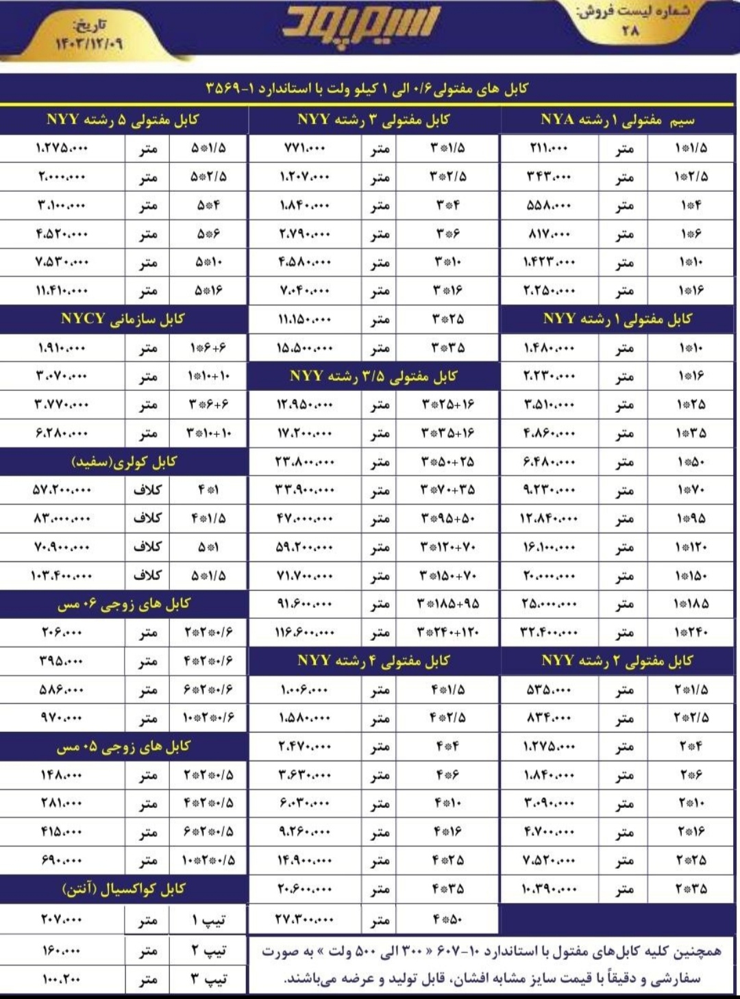در امیرکابل میتوانید انواع محصولات خراسان افشارنژاد را همراه با لیست قیمت کارخانه بهروز مشاهده کنید و خرید خود را با ضمانت اصالت کالا انجام دهید. همچنین تیم ما آماده ارائه مشاوره رایگان برای انتخاب بهترین سیم و کابل متناسب با نیاز پروژههای ساختمانی و صنعتی شماست